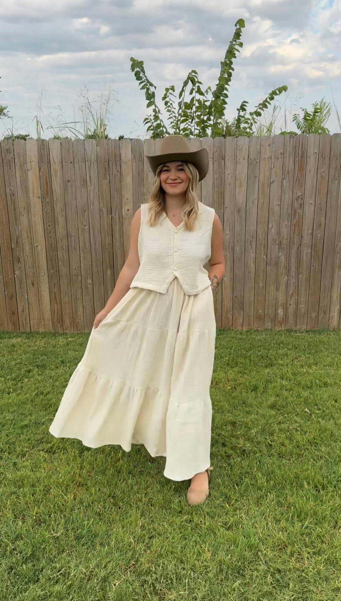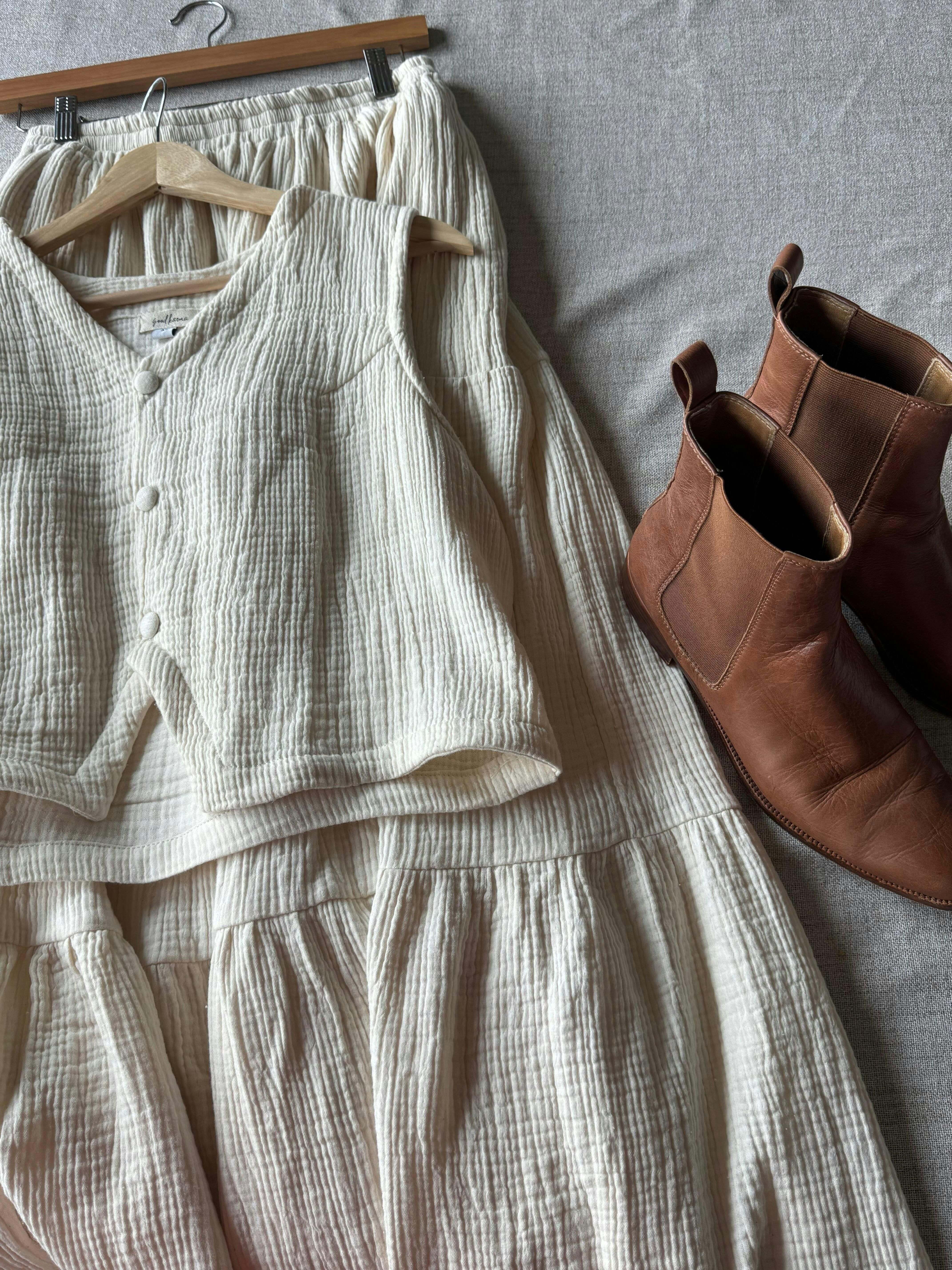 The most dreamy, sustainable and comfortable skirt. The material is amazing quality and isn’t see the through so you won’t need a slip. Looks so cute paired with the top. I get so many compliments every-time I wear it! The skirt was so nicely made I love how it has extra material so it flows so beautifully! Good for tall girlys but I’m 5’3 and I can wear it super high waisted with a cute crop top and it’s the cutest maxi length on me.